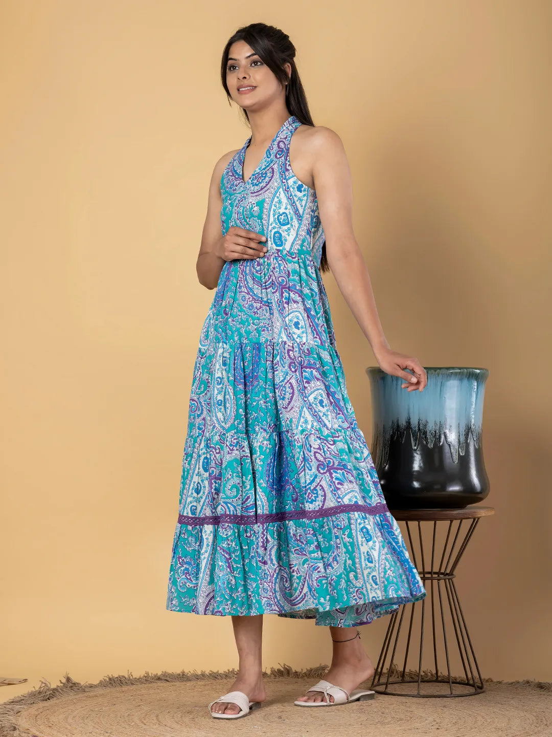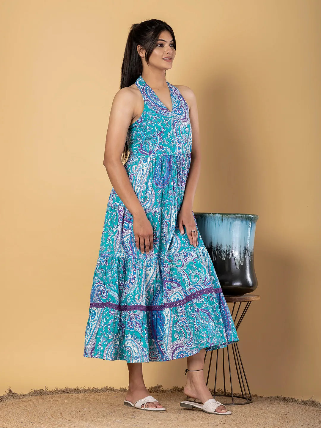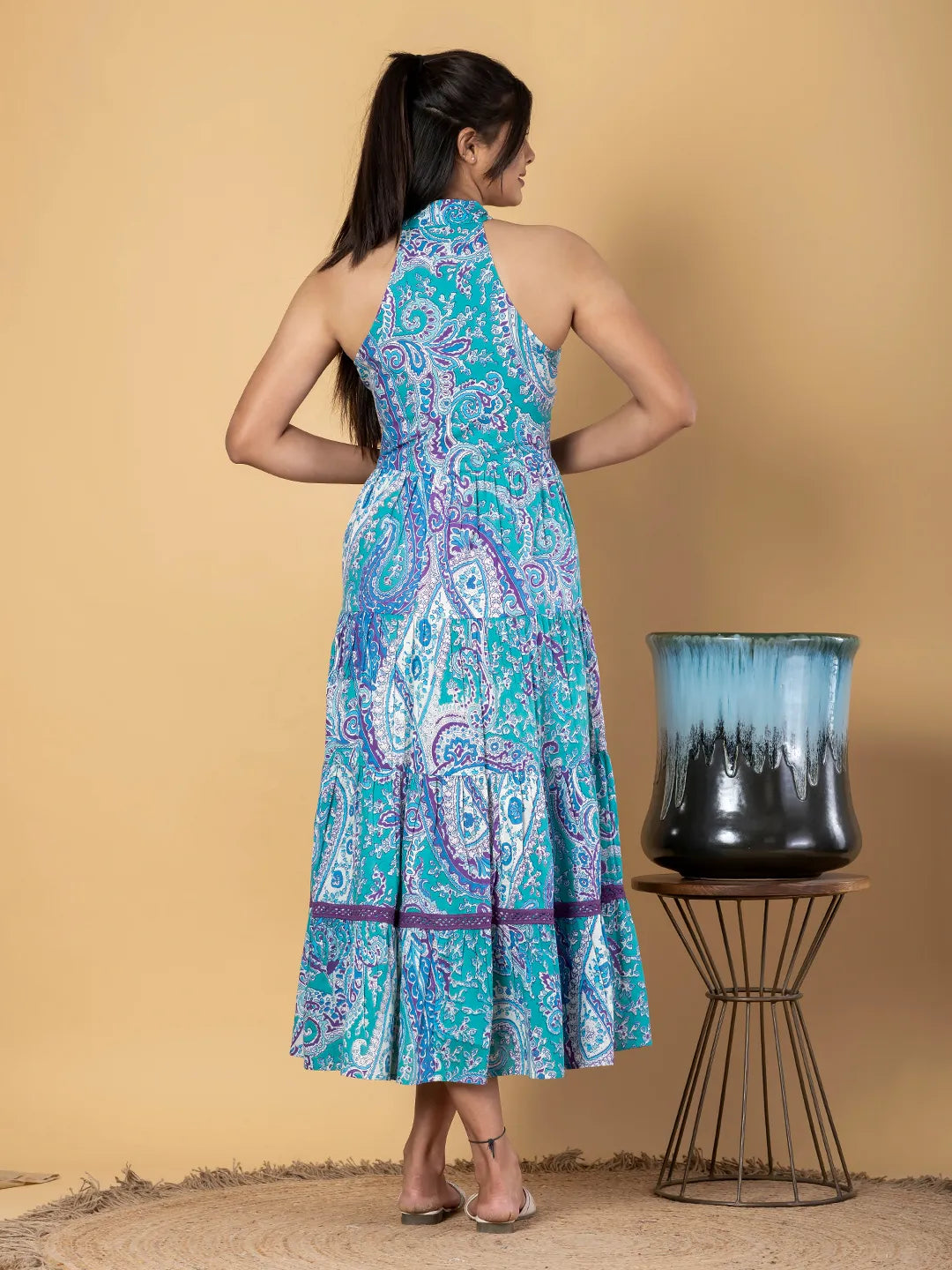 - Turquoise blue paisley print fit & flare dress