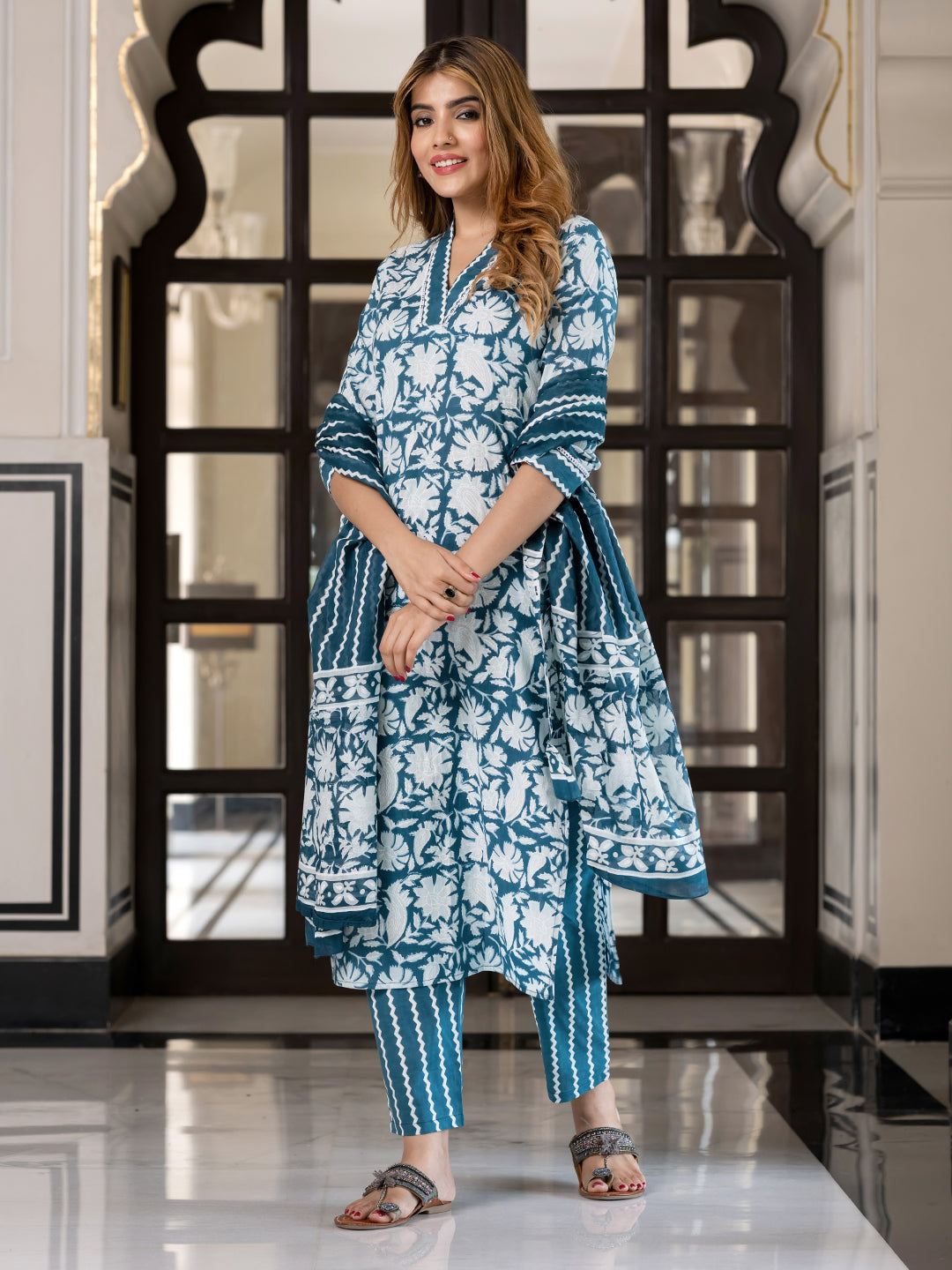 8. Jaitpuriya Women Blue Floral Anarkali Kurta Pant and Dupatta SetJaitpuriya Women Blue Floral Anarkali Kurta Pant and Dupatta Set
