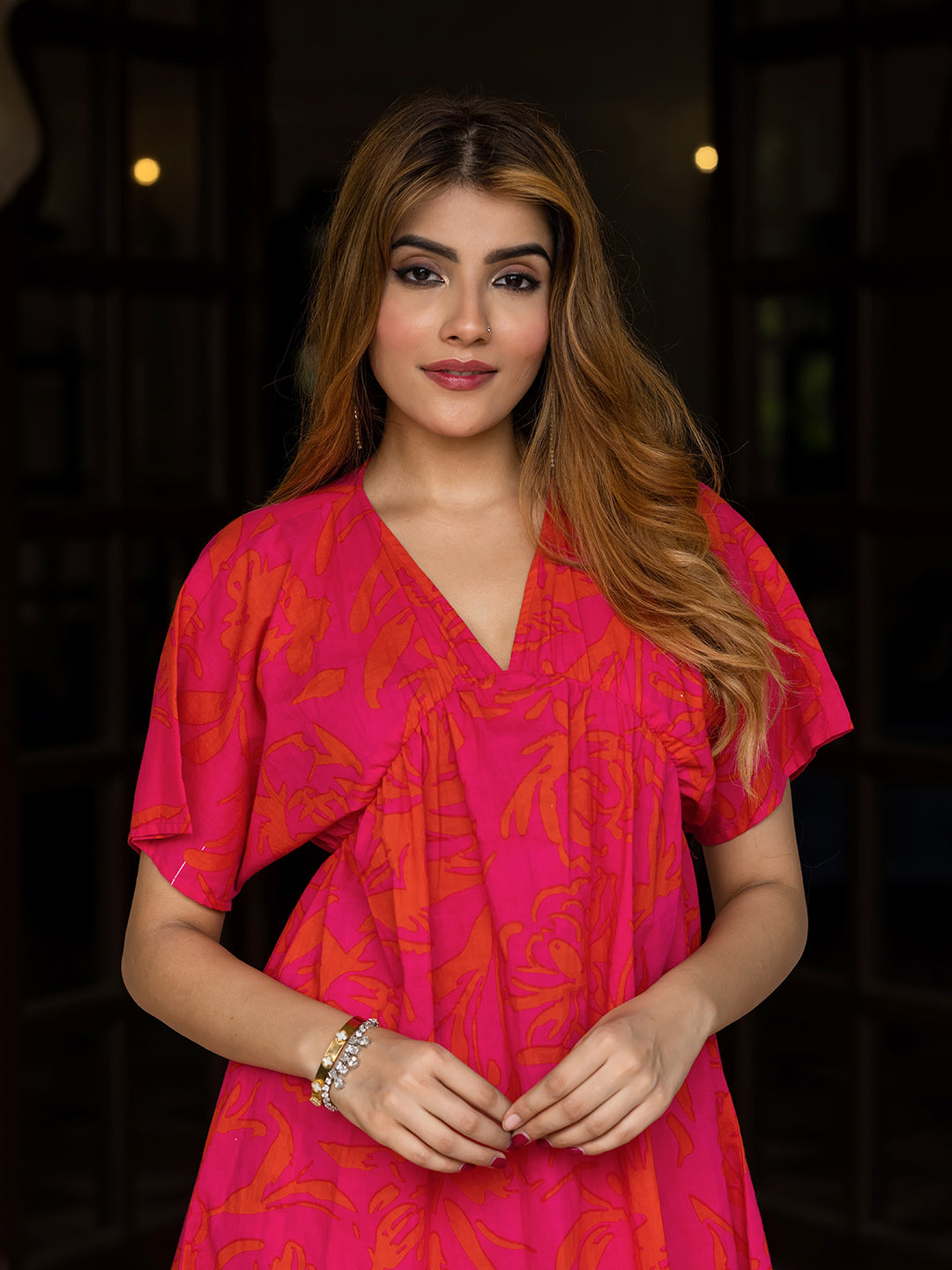 Jaitpuriya Women Pink Pure Cotton fit & flare Dresses