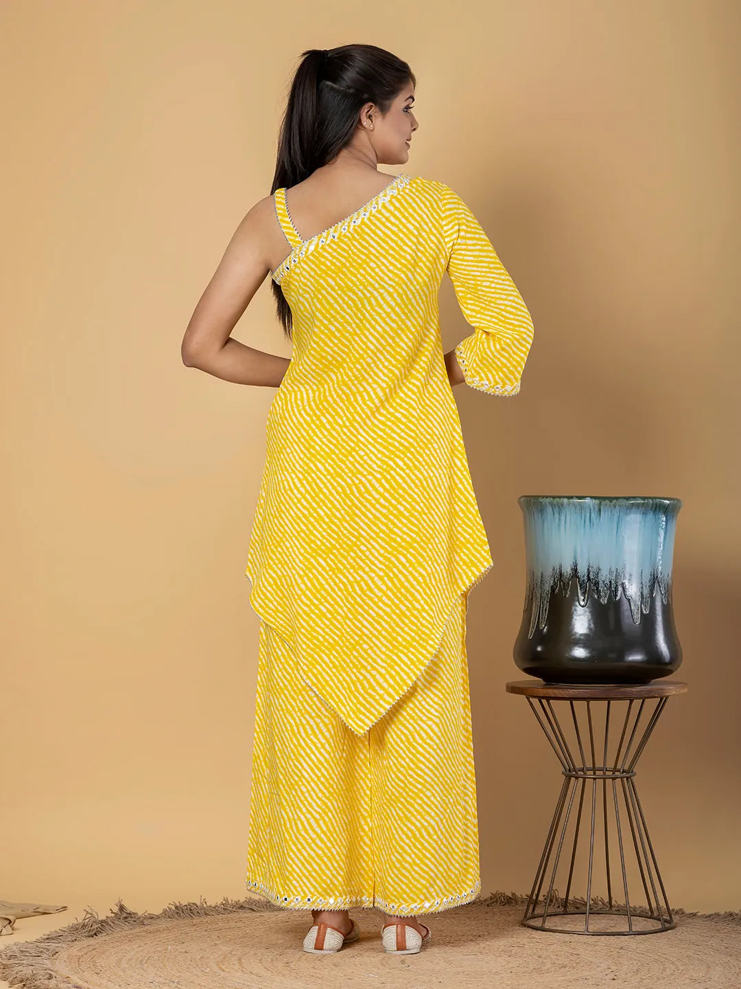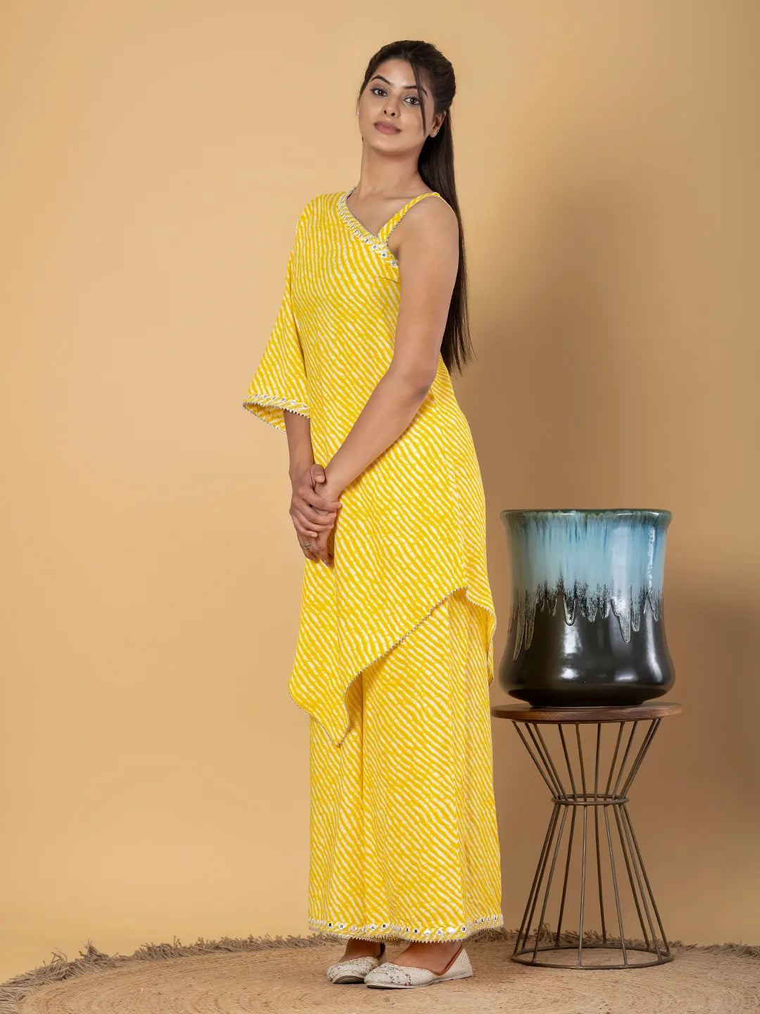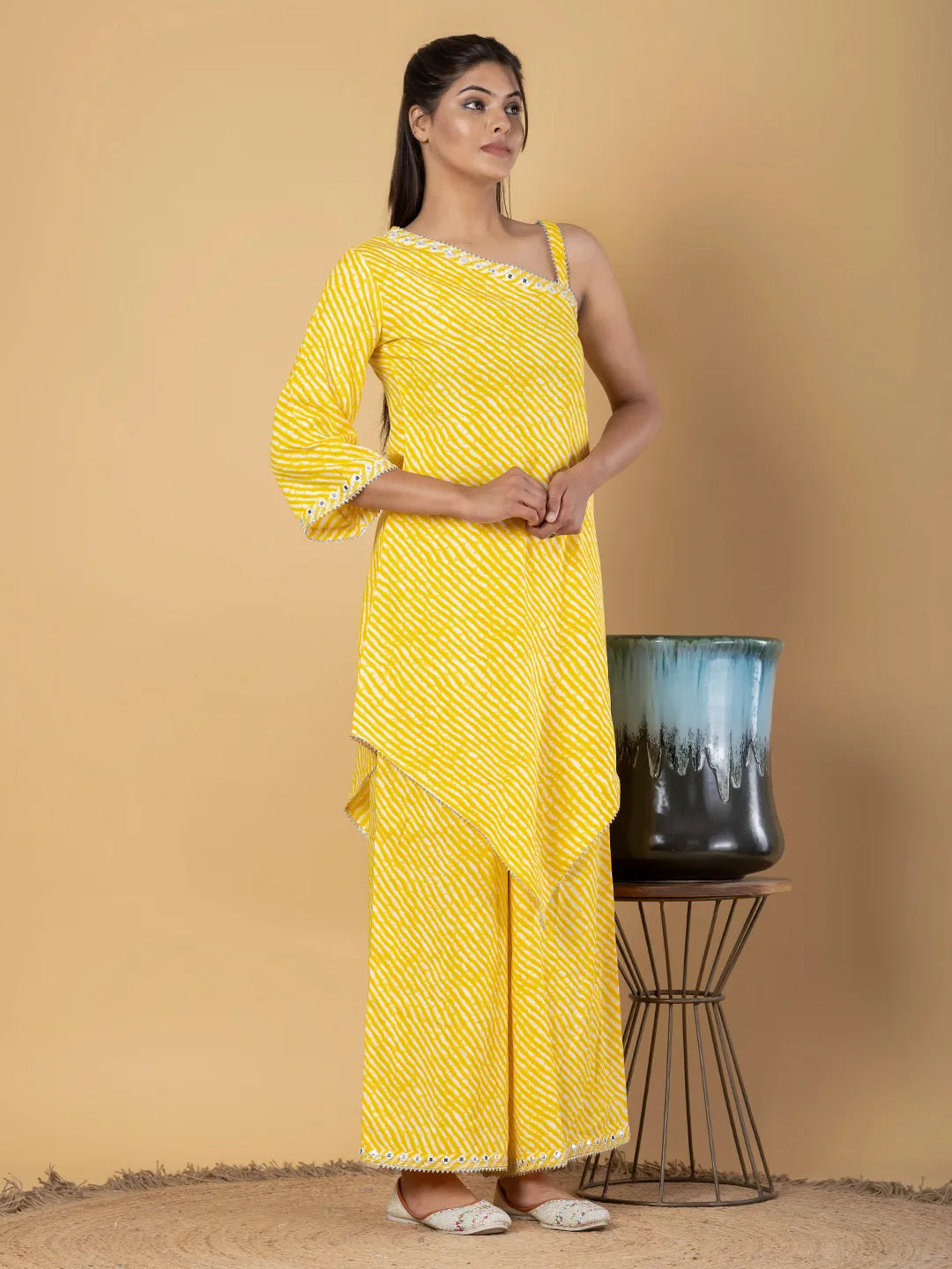 Jaitpuriya Women Yellow Cotton Tunic Co-Orde